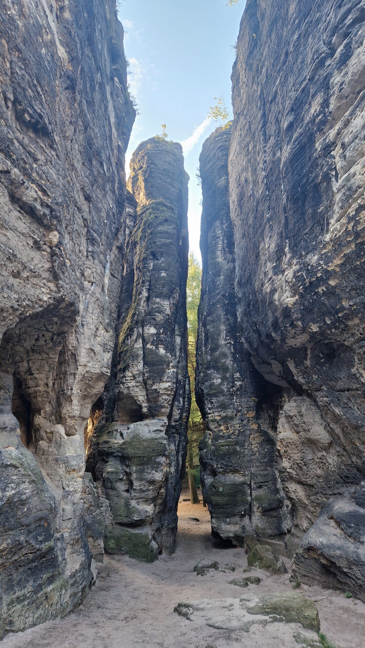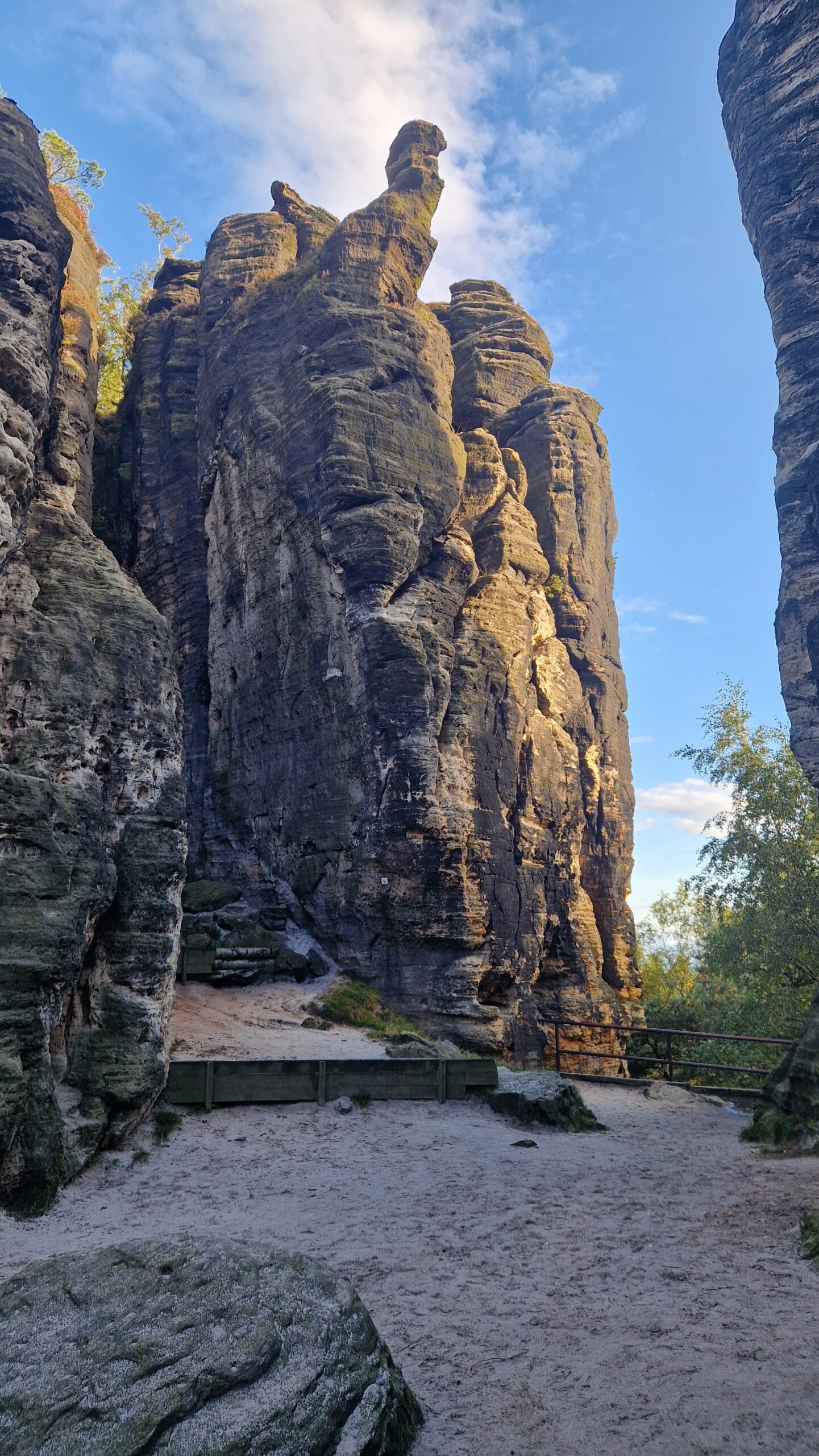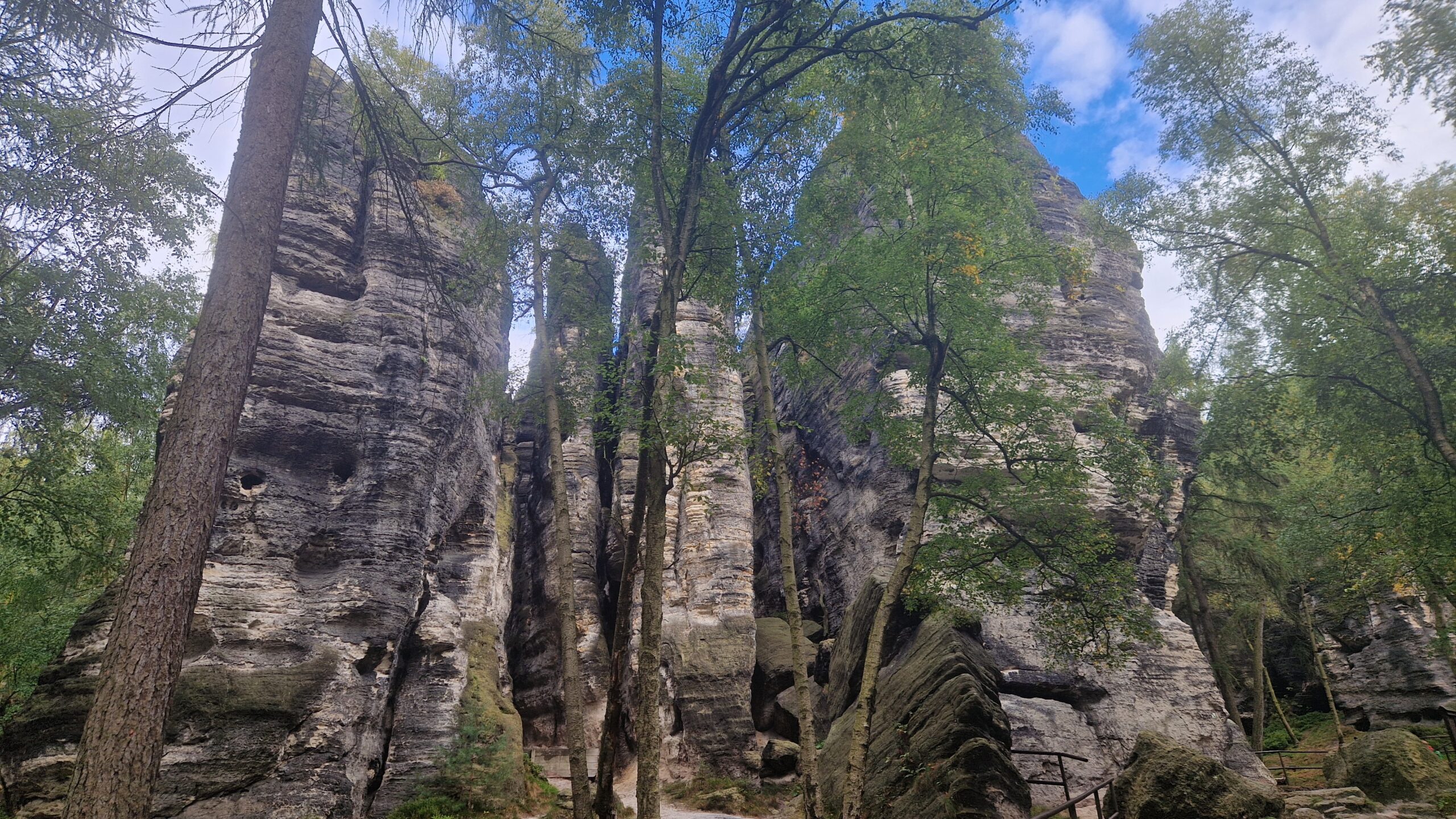 🇨🇿 Zavítali sme totiž do prírodnej rezervácie Tiských stěn, ktorá je jednou z výkladných skríň Českého Švajčiarska. Ak sme včera míňali skaly z pieskovca v lese, tu sme sa doslova strácali v ich labyrinte. Skalné veže týčiace sa do takmer 70-metrových výšok a my tmoliaci sa úzkymi chodníkmi medzi nimi a chodbičkami v nich. Či sme otočili hlavy doprava, doľava alebo sa pozreli za seba, všade sme uvideli iný skalný „monument“ . Miestami sme sa cítili ako vo vychytenej galérii, ktorá prezentuje tie najkrajšie a najvzácnejšie kúsky z toho čo má. V galérii, kde svoje exponáty namiesto človeka dokázala inštalovať samotná príroda.