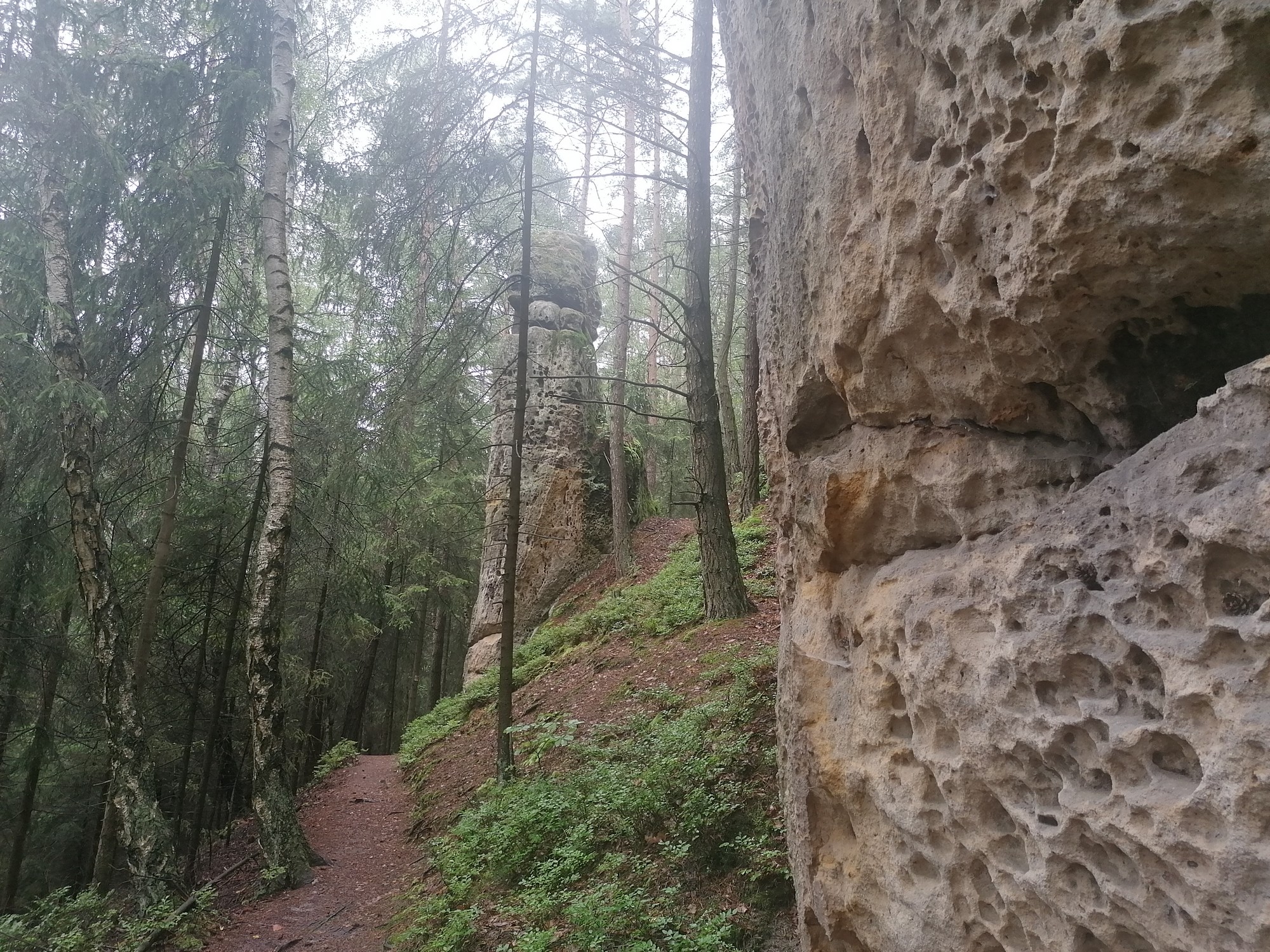 Názov prírodnej rezervácie Kokořínský důl dáva tušiť, že naše turistické chodníky dnes viedli viac údolím ako hrebeňom. Žltá značka v Planém dolu nás bezpečne viedla vyšľapaným chodníkom, tu doprava, vzápätí zas doľava. A za každou zákrutou nás čakalo vždy nejaké prekvapenie v podobe vápencového skaliska, či rovno skalísk s typickými vyhĺbenými jamkami (voštinami) po celom ich obvode.