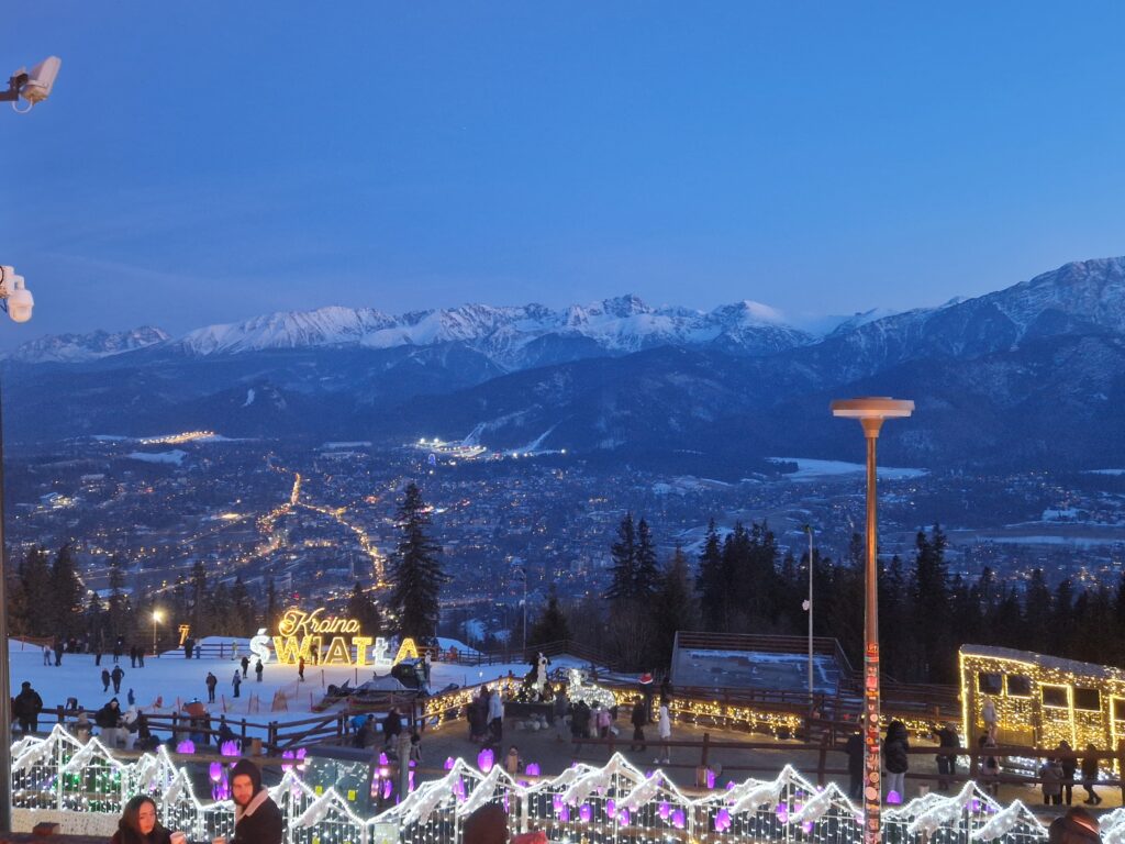 14:00 hod príchod do Zakopaného, krátka prechádzka ulicou Krupowki, následne výstup lanovkou na vrch Gubalowka (cca 9€ obojsmerný lístok), prechádzka Krajinou Svetla