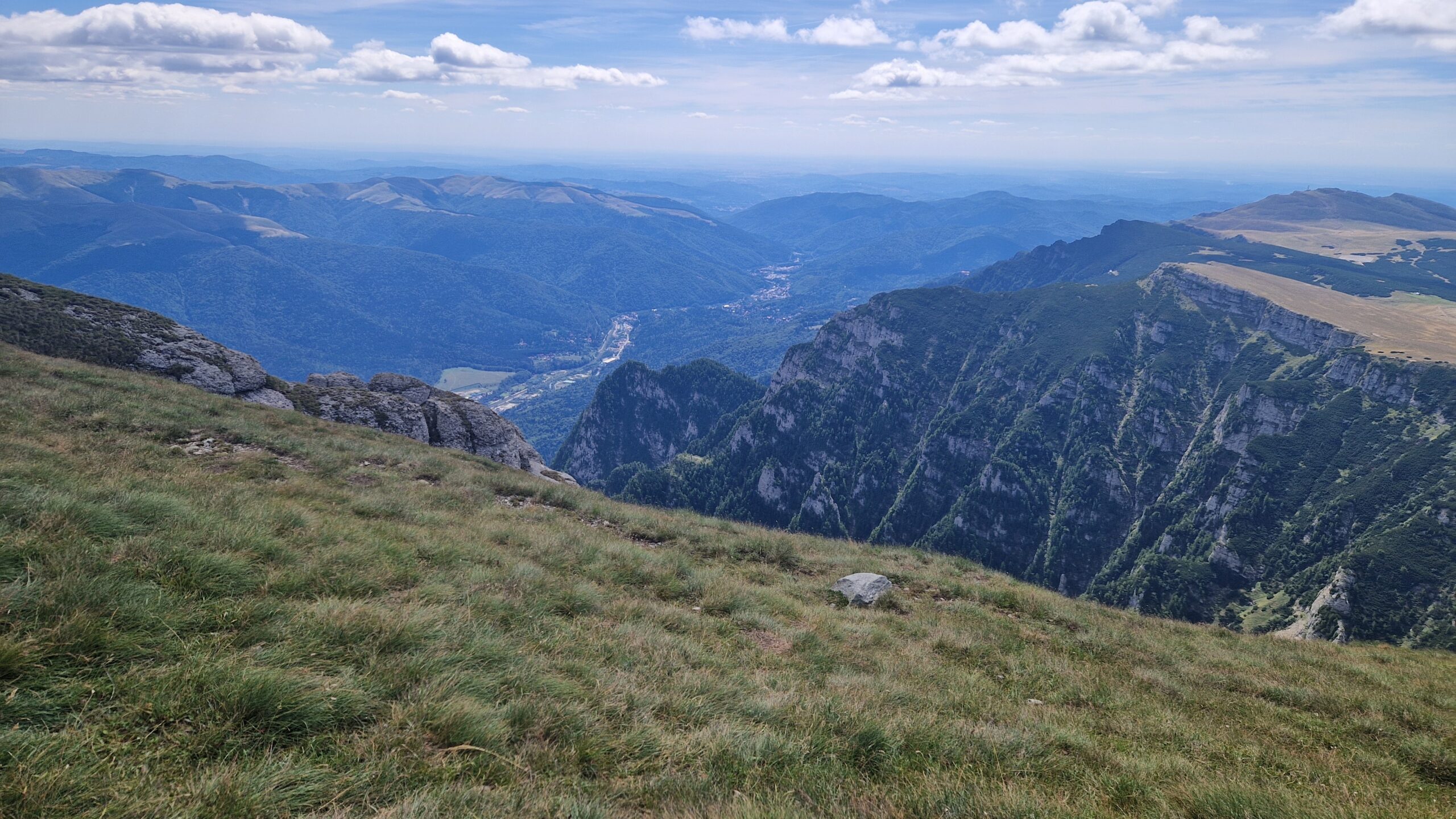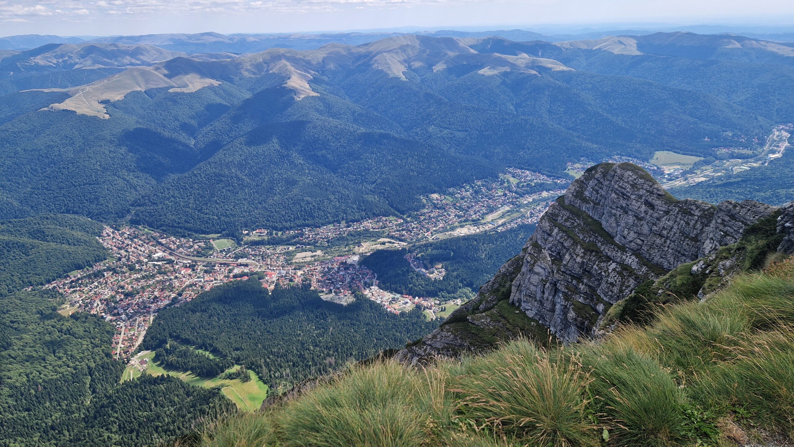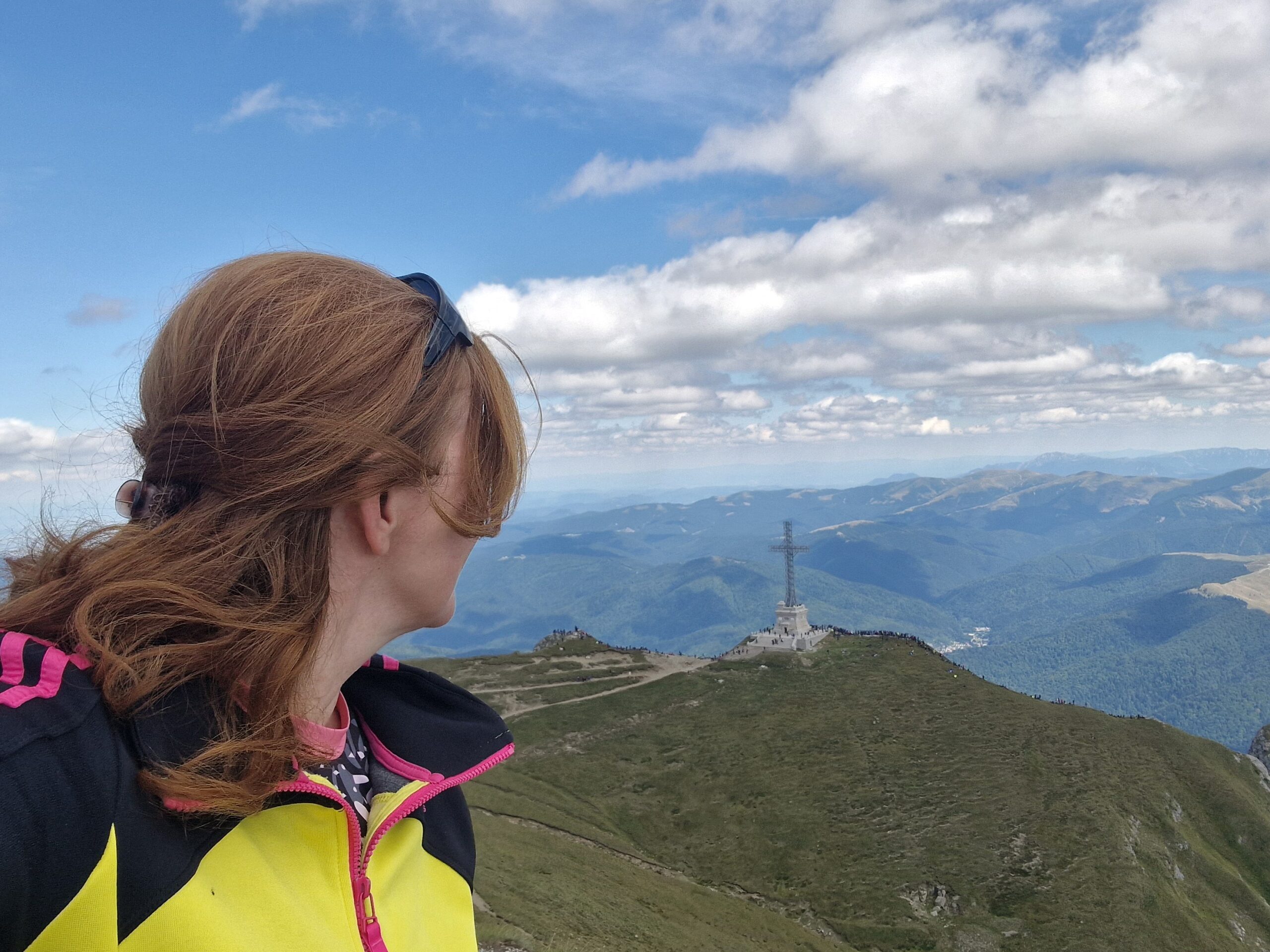 🇷🇴 Pohorie Bucegi, ktoré je jeho súčasťou má podmanivý horský hrebeň, na ktorý sa dá v pohode dostať lanovkou. A tak vo výške 2300m, kráčajúc po zelenej tráve so slnkom nad hlavou, hľadeli sme na vzdialené vrcholky pohorí Južných Karpát, nazývaných aj Transylvánskymi Alpami a na skalnaté útvary naopak stojace priamo pred nami.