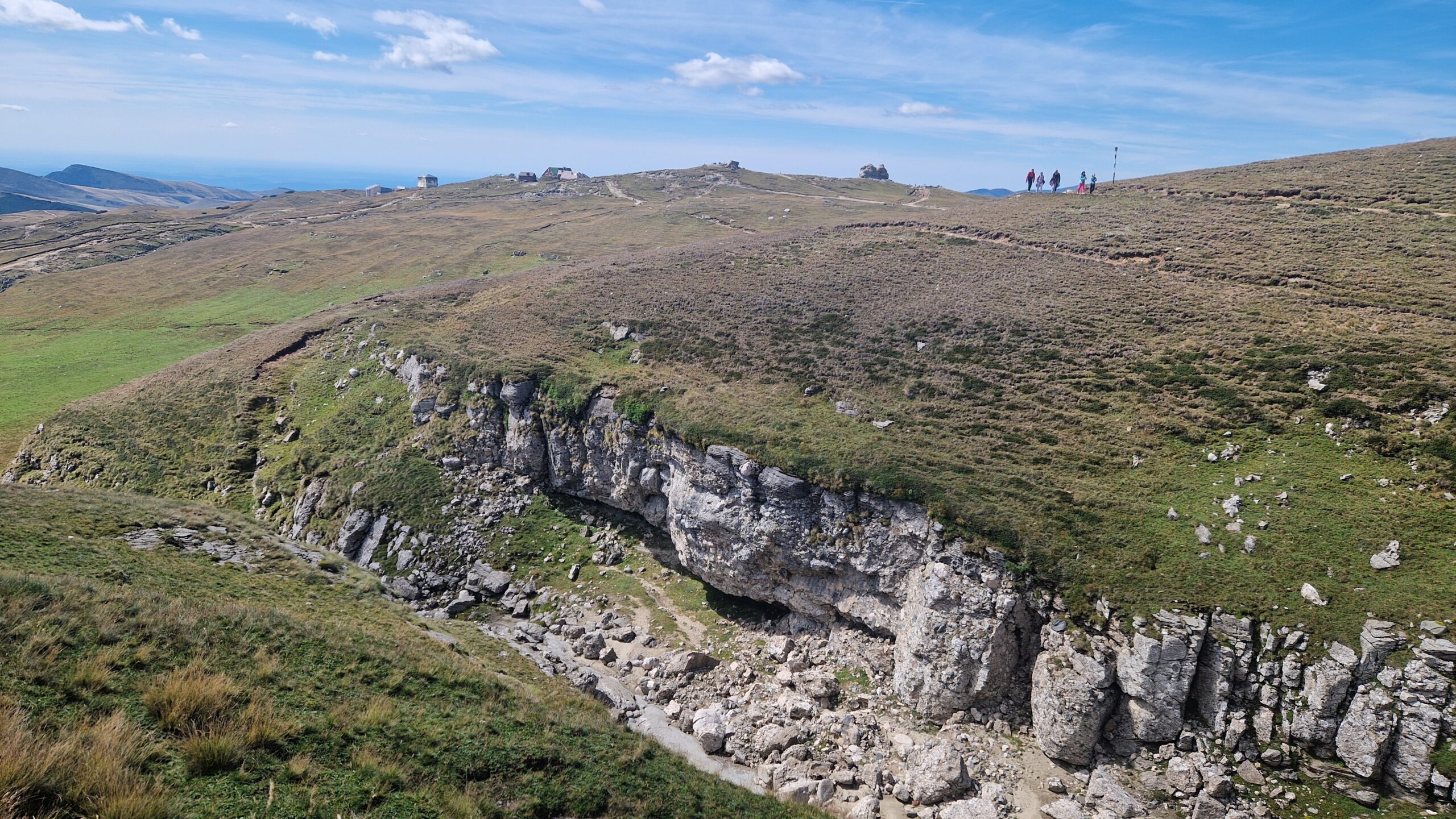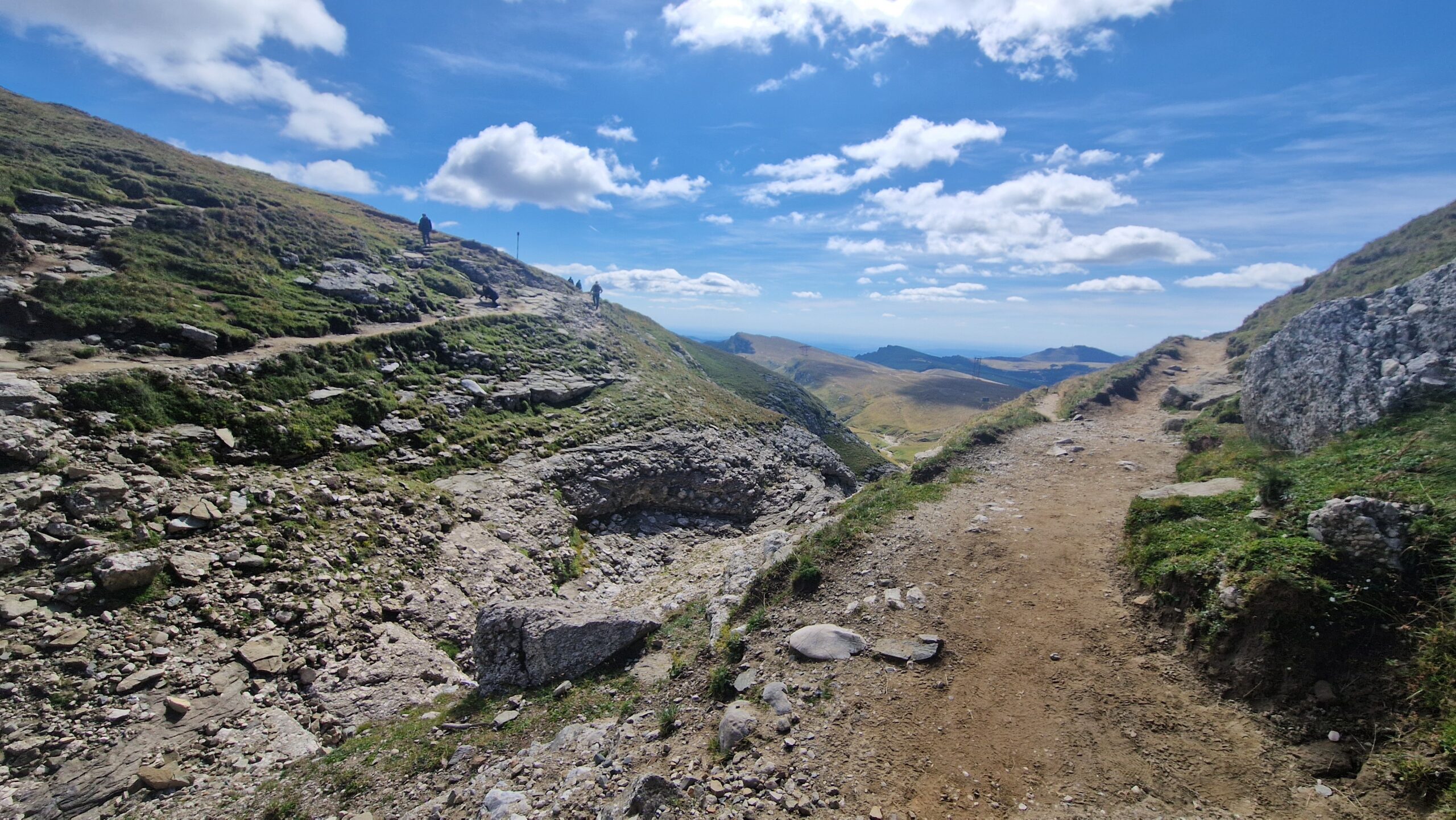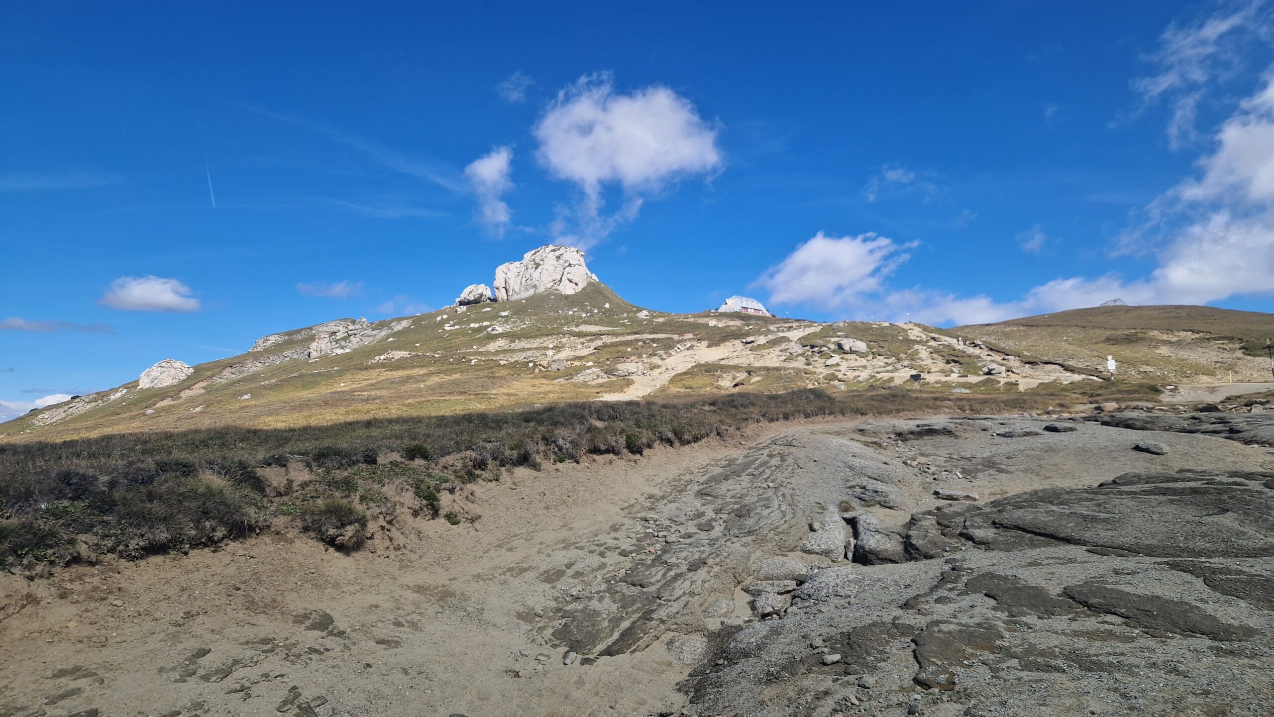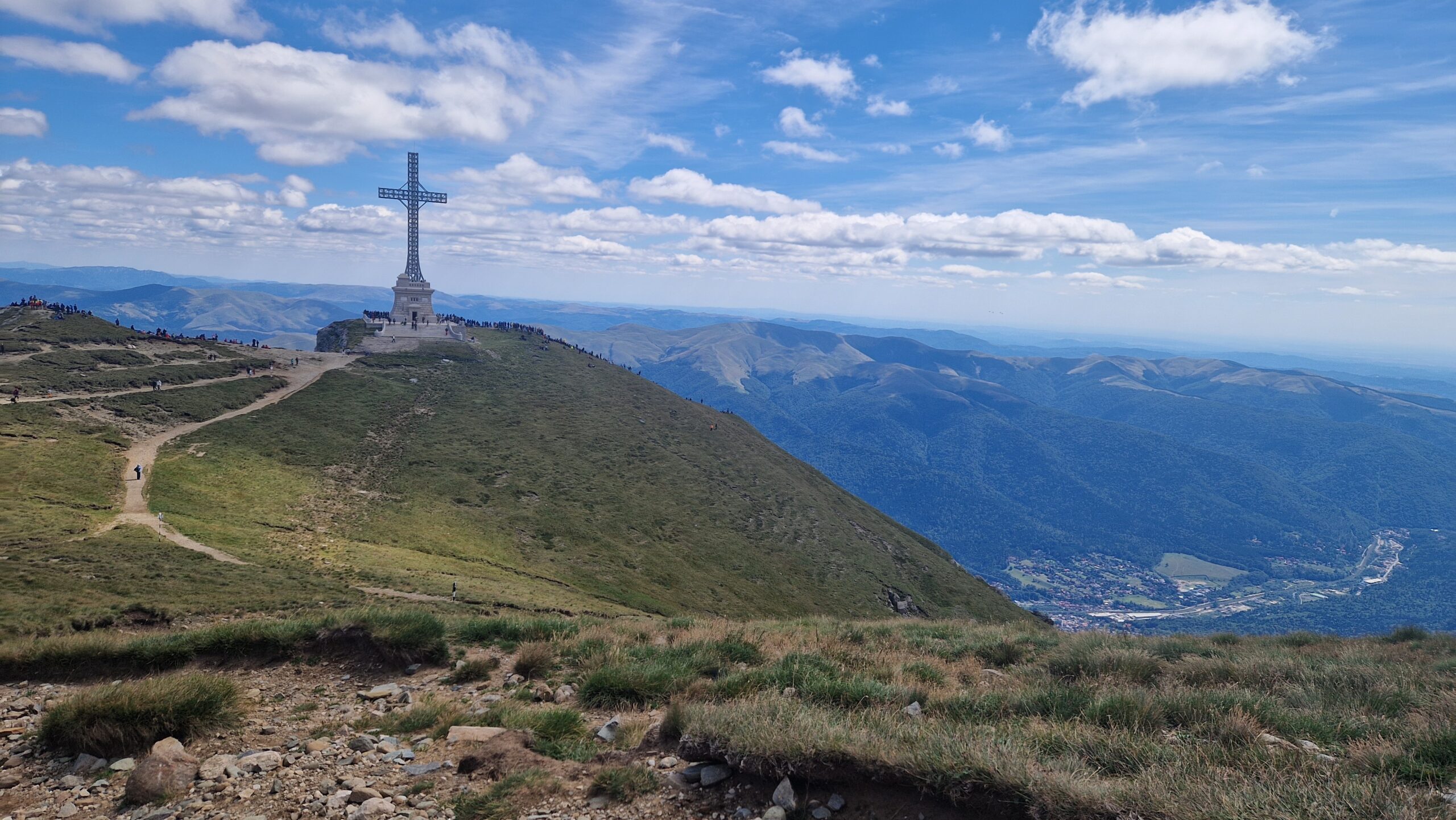🇷🇴 Pohorie Bucegi, ktoré je jeho súčasťou má podmanivý horský hrebeň, na ktorý sa dá v pohode dostať lanovkou. A tak vo výške 2300m, kráčajúc po zelenej tráve so slnkom nad hlavou, hľadeli sme na vzdialené vrcholky pohorí Južných Karpát, nazývaných aj Transylvánskymi Alpami a na skalnaté útvary naopak stojace priamo pred nami.