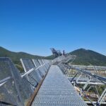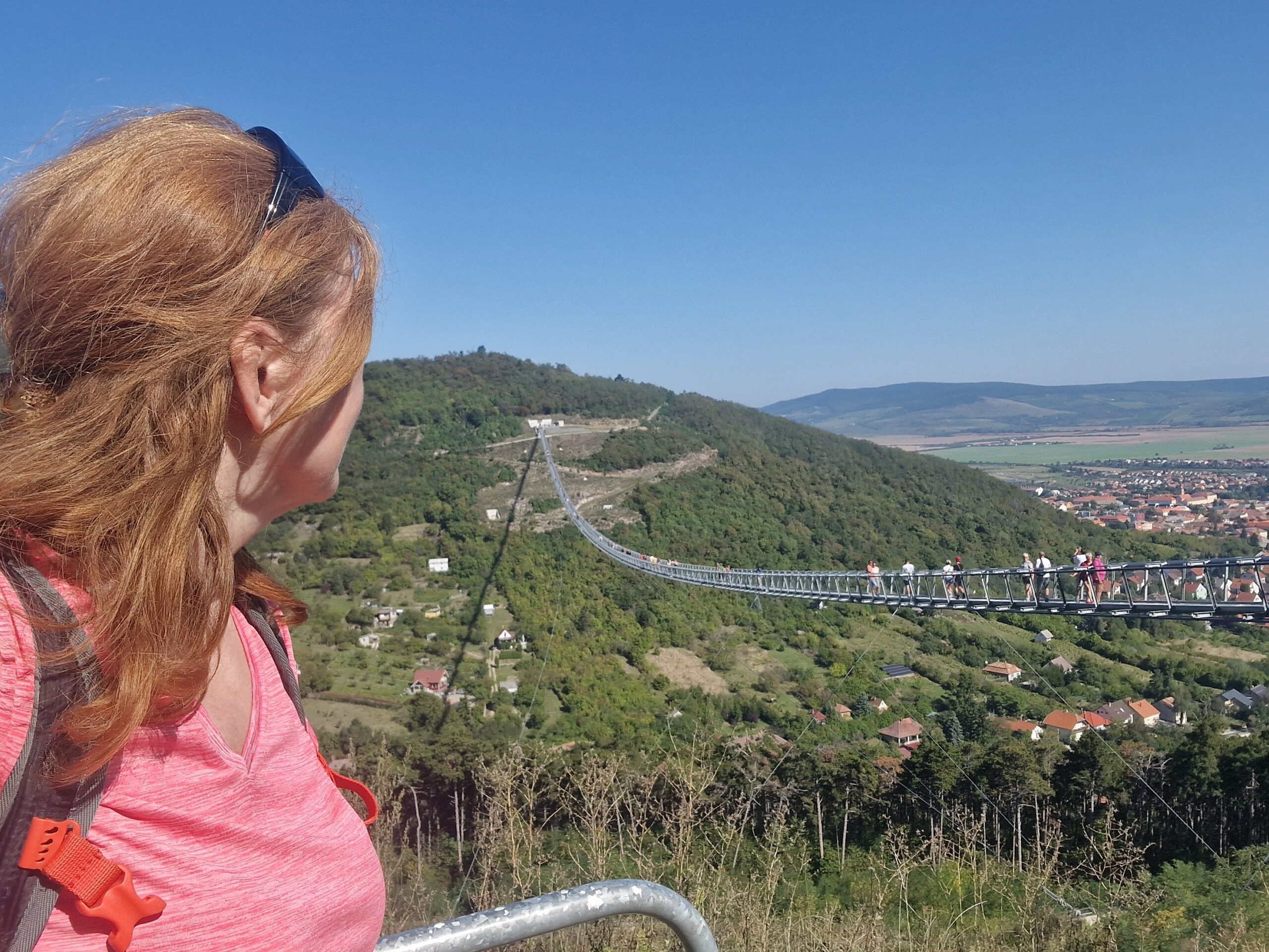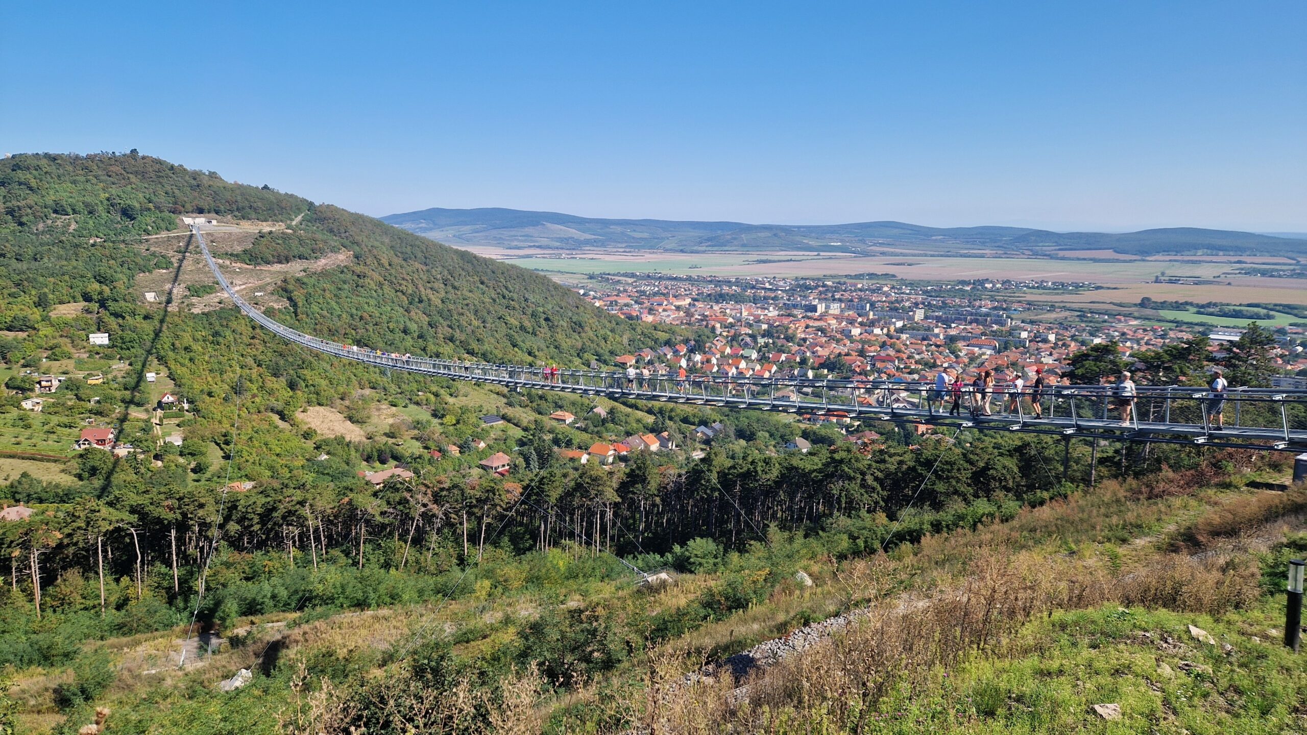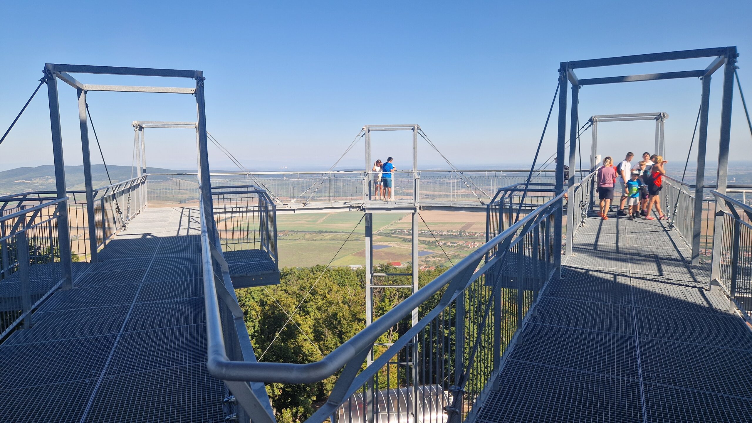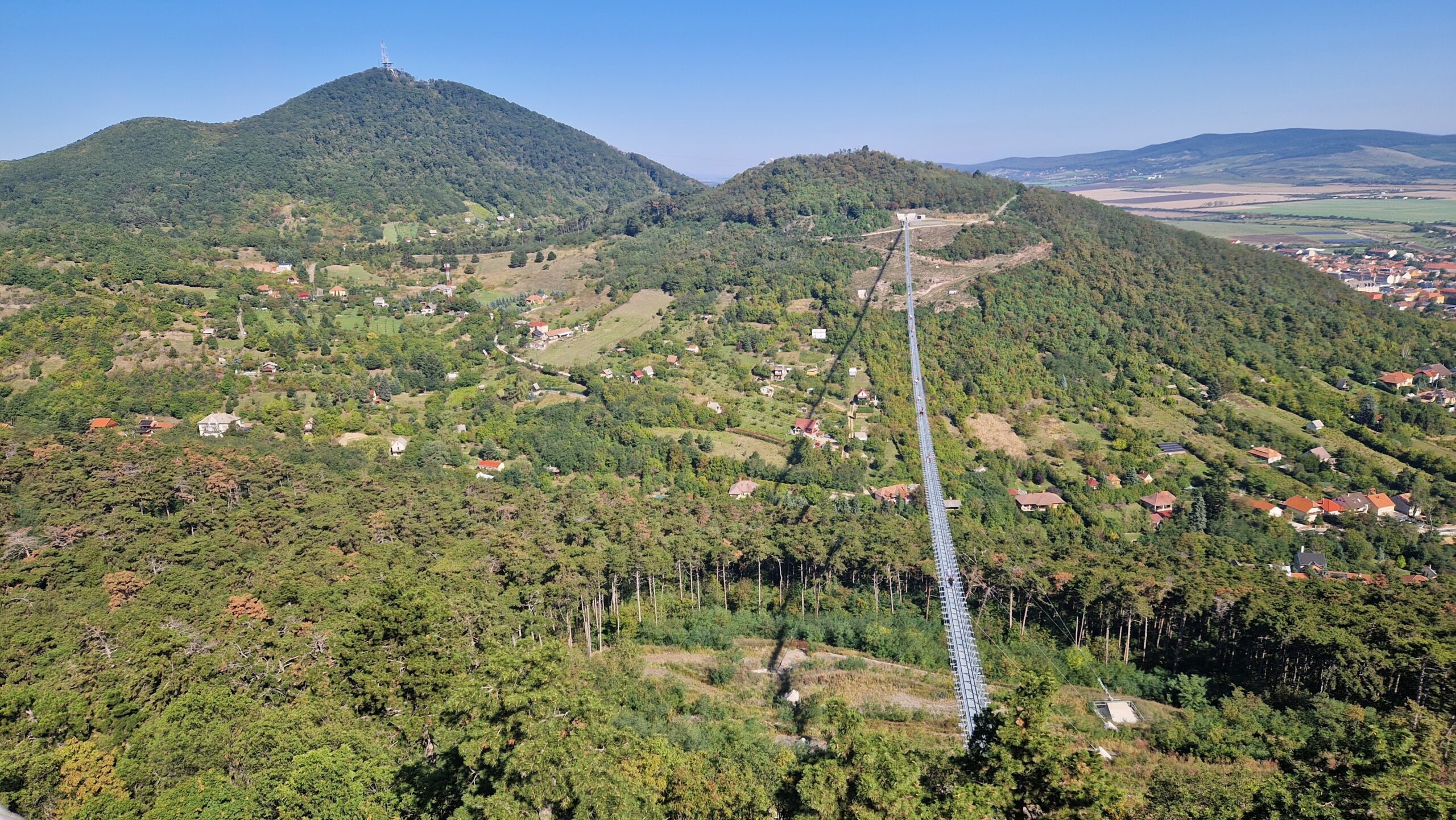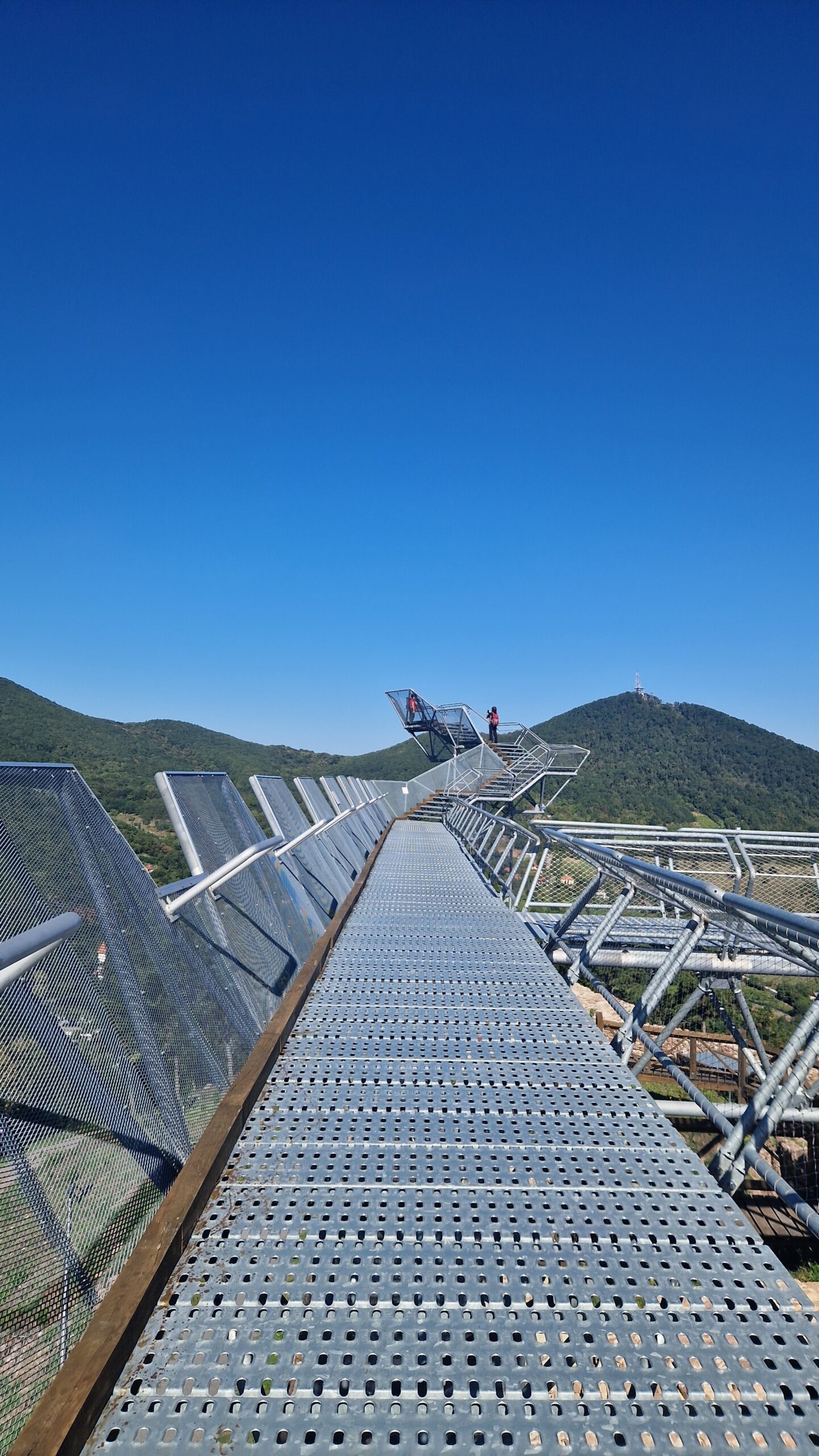 🇭🇺 Most narodnej jednoty v Satoraujhely je takmer 700m dlhý most, visiaci 83m nad zemou, ktorý dokáže uniesť max. 300 ľudí. Nás bolo 16 a celkovo všetkých dokopy sotva stovka, a tak sme si mohli prechádzku po ňom užiť bez nepríjemnej tlačenice tela na telo.