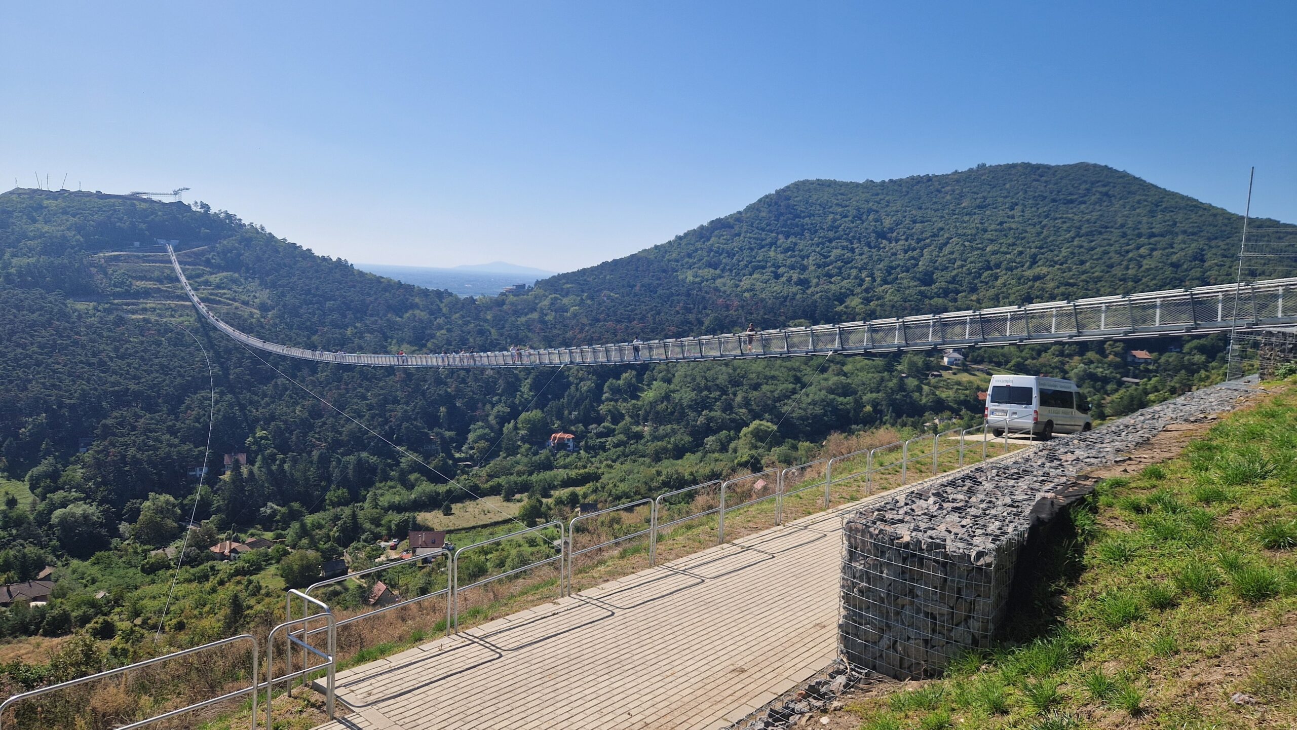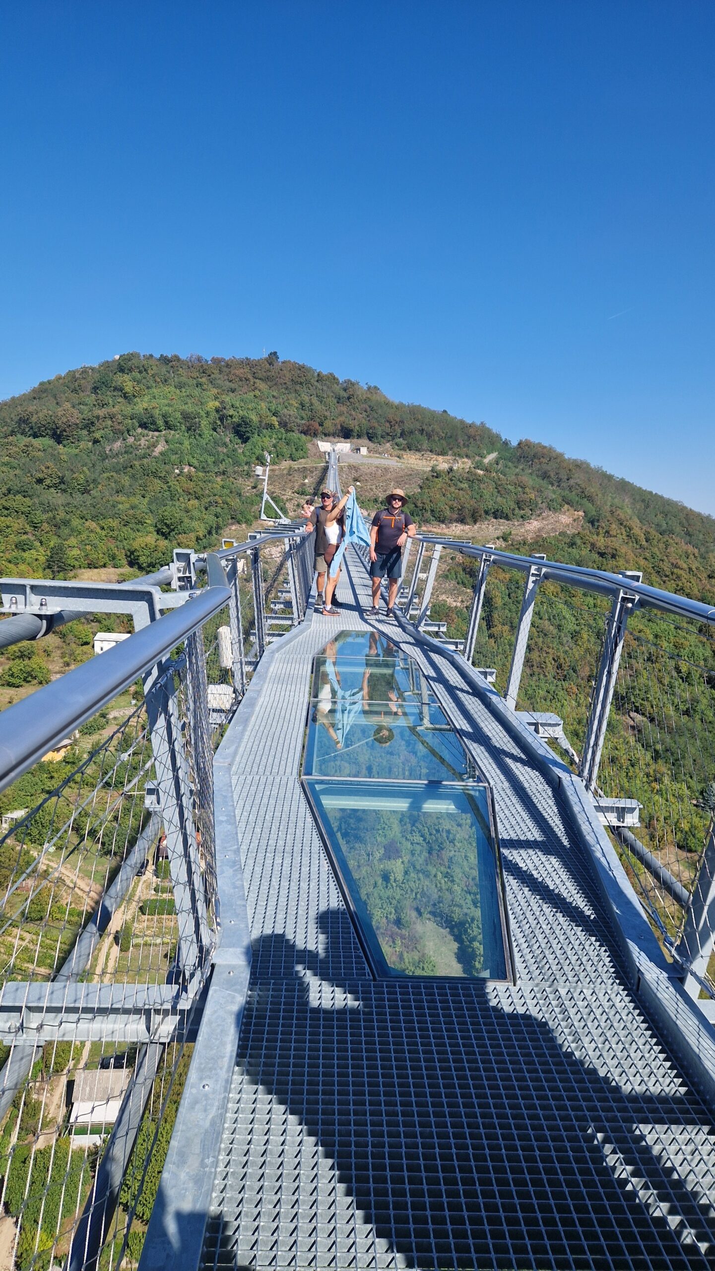 🇭🇺 Tak sa nám to konečne podarilo! Kým pred rokom sme kvôli silnému vetru zostali stáť pred bránami vedúcimi ku najdlhšiemu visutemu mostu na svete, včera sme sa po ňom prešli ako králi pri ich korunovácii.